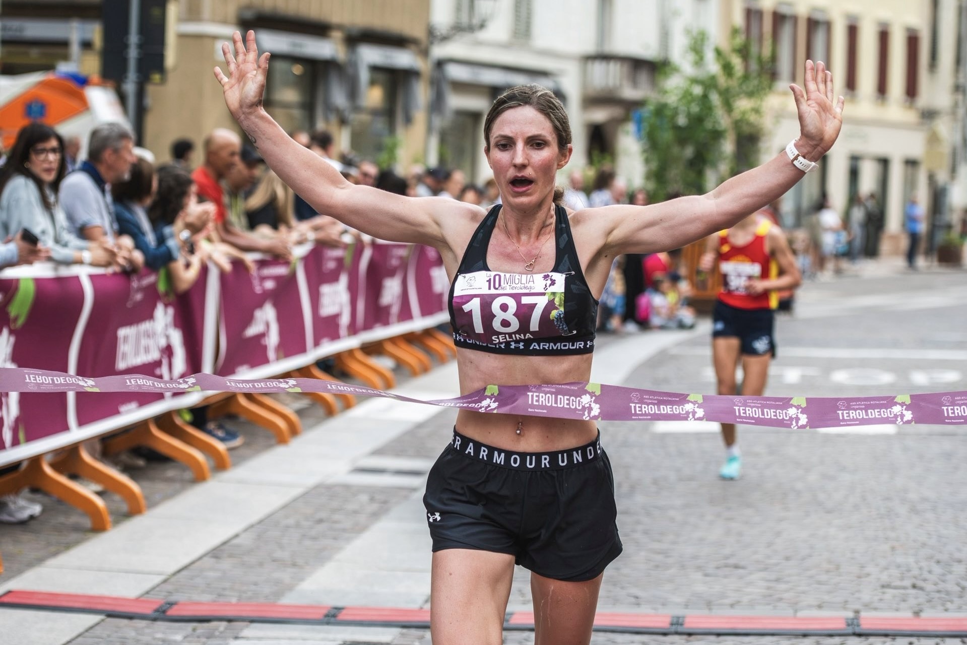 Etwas mehr als eine halbe Minute später wurde die Boznerin Andreea Lucaci vom Publikum im Ziel empfangen. Die 31-Jährige beendete das Rennen in 1:03.30,2 Stunden und belegte den zweiten Platz. Auf den dritten Platz kam eine weitere Athletin aus dem Vinschgau: Annemarie Schöpf (ASV Rennerclub Vinschgau) erreichte das Ziel in 1:06.37,7 Stunden und lag damit vor Francesca Franceschini (U.S. Quercia DAO CONAD/1:06.55,6), der Schwester der beiden Trentiner Läufer, die beim Rennen der Männer auf dem Podium standen. Der fünfte Platz ging hingegen an Lisa Thaler (ASC Sarntal/1:08.40,4).